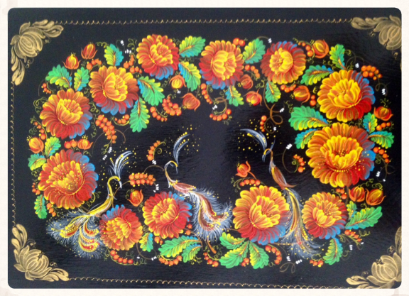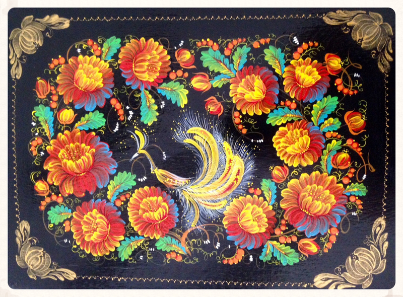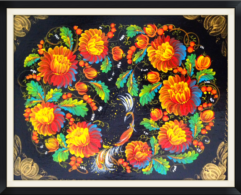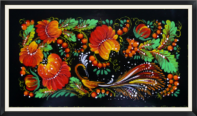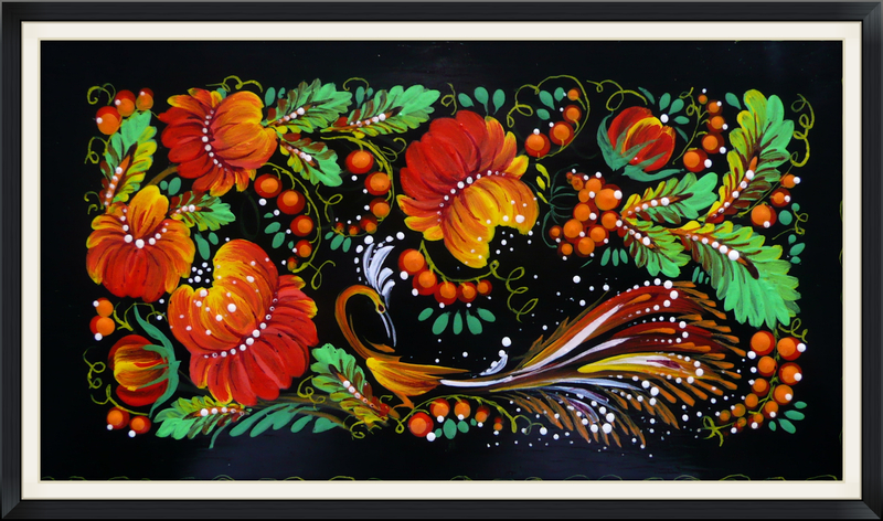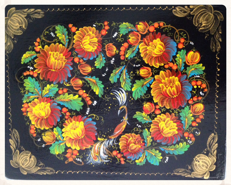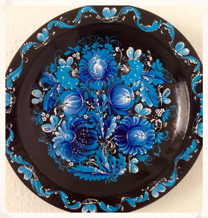 2005 Öl Teller Holz angewandte Malerei"Petrikiwka"